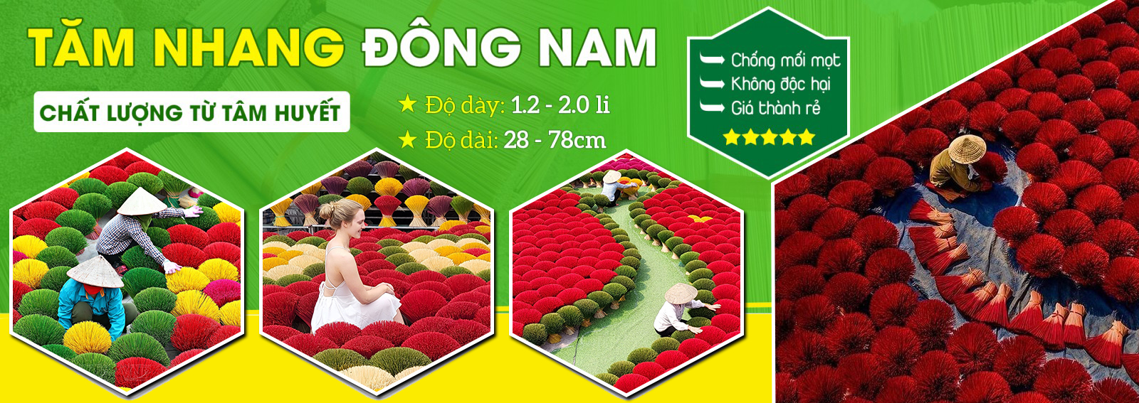 Làm việc và cống hiến bằng sự tâm huyết, cố gắng bền bỉ trong từng giây phút, Tăm Nhang Đông Nam hy vọng rằng sản phẩm của chúng tôi sẽ làm cho quý khách hài lòng về chất lượng. Hãy cùng chúng tôi giữ gìn nét đẹp văn hóa Việt!