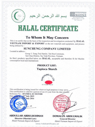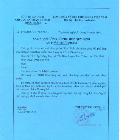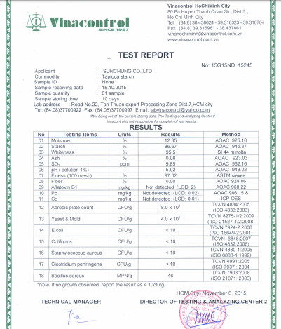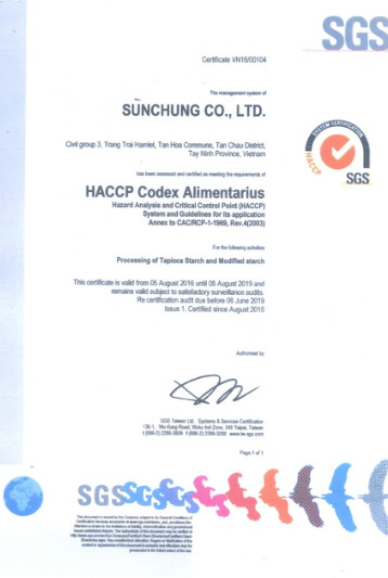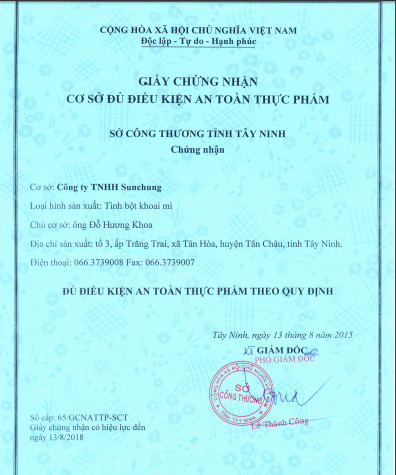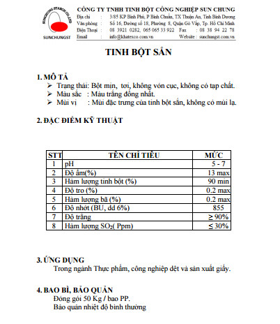 Cơ sở 2:Công Ty TNHH Tinh bột công nghiệp Sunchung: Sx Bột biến tính : 1.000 tấn/ tháng.