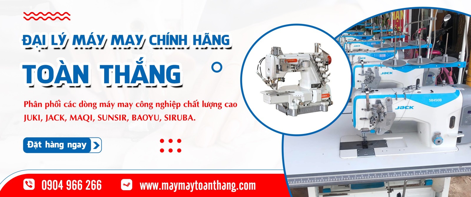 Máy May Toàn Thắng là doanh nghiệp uy tín chuyên phân phối các dòng máy may công nghiệp chất lượng cao chính hãng JUKI, JACK, MAQUI, SUNSIR, BAOYU, SIRUBA tại Việt Nam. Với nhiều năm kinh nghiệm trong lĩnh vực thiết bị may mặc, chúng tôi luôn đặt lợi ích của khách hàng lên hàng đầu, mang đến những sản phẩm bền bỉ, chính xác và hiệu quả nhất cho ngành may.
