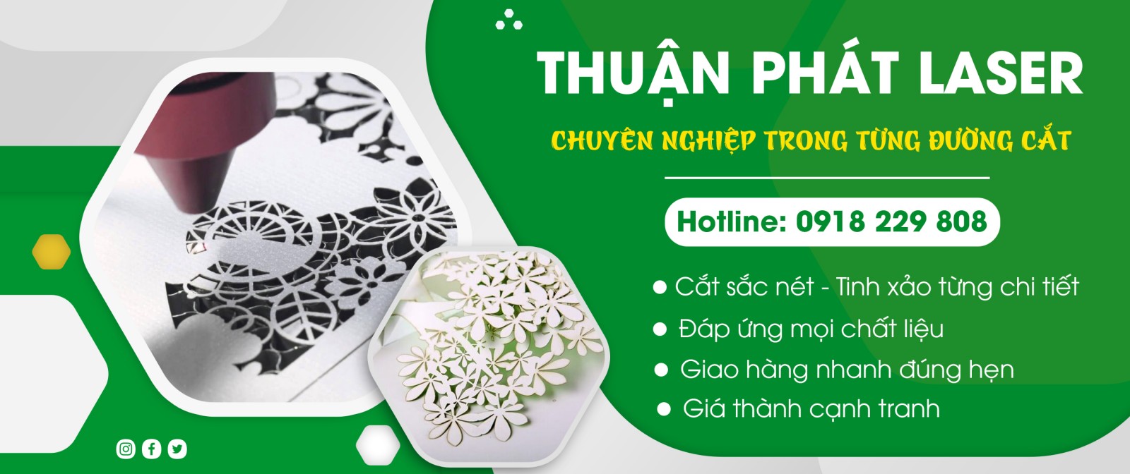 Thuận Phát Laser là đơn vị chuyên sâu trong lĩnh vực cắt – khắc laser trên vải và may thêu theo yêu cầu, phục vụ đa dạng ngành nghề như thời trang, đồng phục, túi xách, quà tặng, đồ handmade và phụ kiện trang trí. Với mục tiêu mang đến những sản phẩm thẩm mỹ – chính xác – khác biệt, chúng tôi luôn lấy chất lượng và uy tín làm nền tảng phát triển.